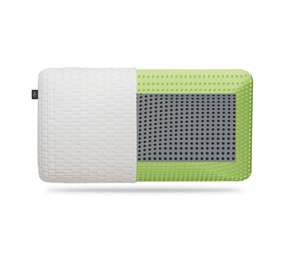 A high profile memory foam pillow infused with aloe vera, featuring MCP technology for refreshing comfort that adapts to your body temperature. Deep sleep, free from micro-awakenings.