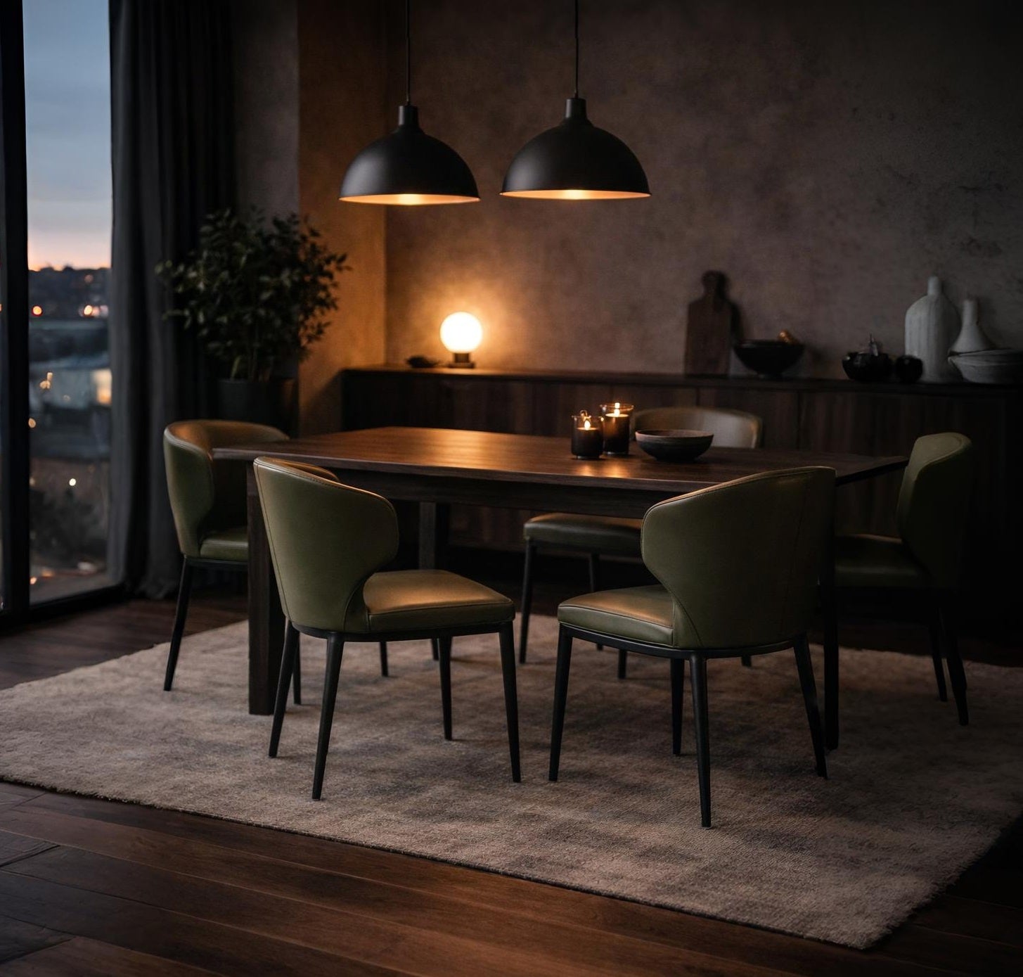 Upholstered in Olive Green PU.